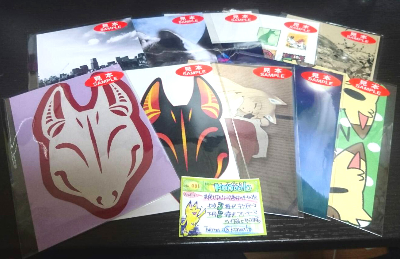 前回の+Pでは完売した狐面ポストカードは勿論、可愛い狐っ娘、はたまたデフォルメされた可愛い狐などなど……